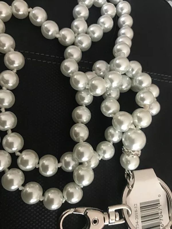 Beautiful pearl layard with crystal around one bead. Where your work or conference badge in style!